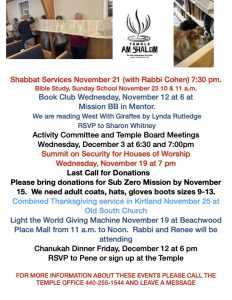 Activities & Events & Chanukah! Nov. to Dec. 2025