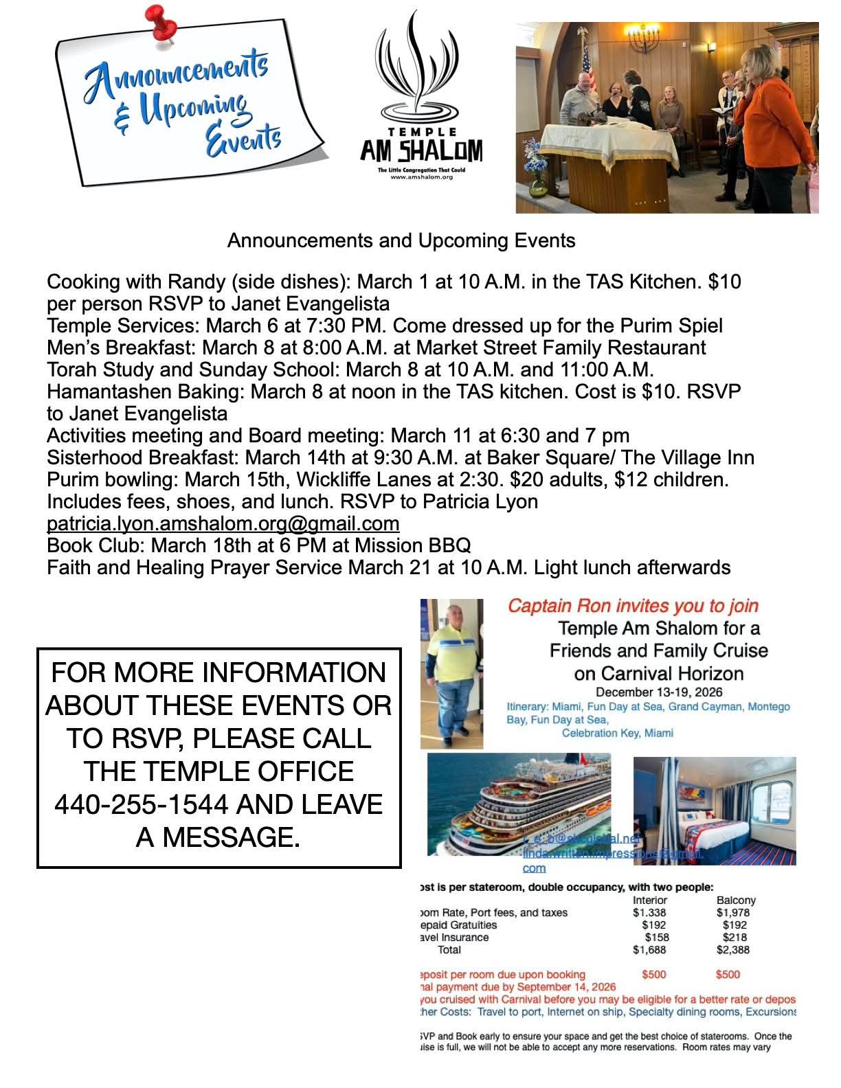 Activities, Events & Cruise Feb, Mar, Dec 2026